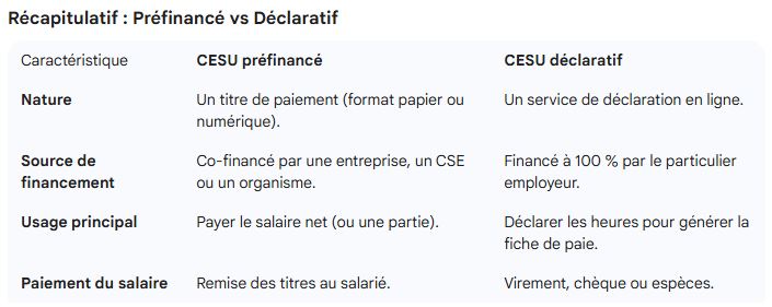 C’est un moyen de paiement pour rémunérer tout ou partie du salaire de l’employé à domicile. L’employeur déclare au CESU la rémunération versée ; à la différence du CESU « déclaratif » qui permet de déclarer facilement la rémunération du salarié à domicile.
